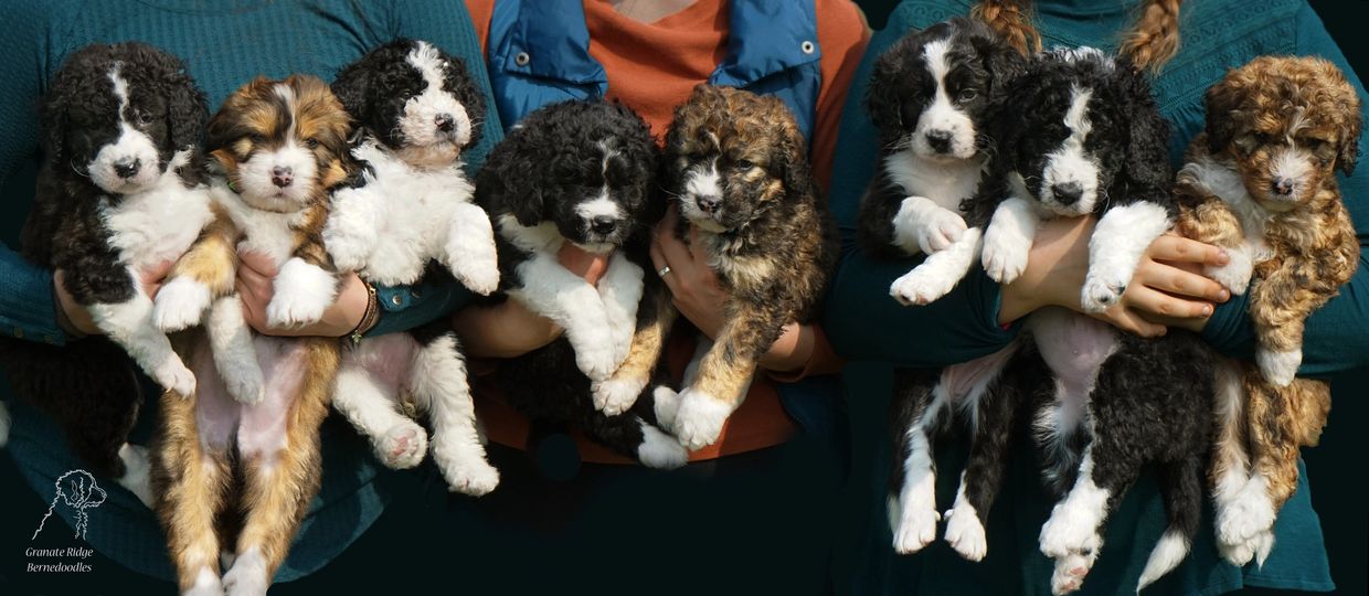 Hello, and welcome to Granite Ridge Bernedoodles! We are a Doodle-loving family located in Central WI. We absolutely ADORE the Bernedoodle breed, and strive to produce the healthiest, happiest, and of course... CUTEST puppies around! Our dogs are raised indoors, and treated as family members from the day they are born. Each pup is handled by our young children daily, and have many different exposures & healthy challenges to overcome in the 8+ weeks they are with us! We look forward to bringing you your forever best friend.